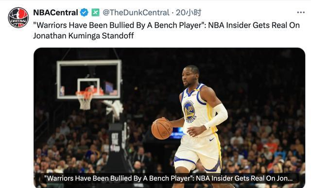 对此, 美媒NBACentral转载了NBA Insider对于近期勇士续约库明加事件的看法:“我很惊讶勇士竟然被一名联盟普遍认为的替补球员如此的残酷霸凌,库明加是一名替补球员,勇士竟然被替补球员欺负。你可能会期待一位NBA巨星会做出这样的对峙,但库明加不是。事实上,尽管他寻求一份每年3000万美元的合同,但他的轮换还是在巴特勒之后担任替补出场。”